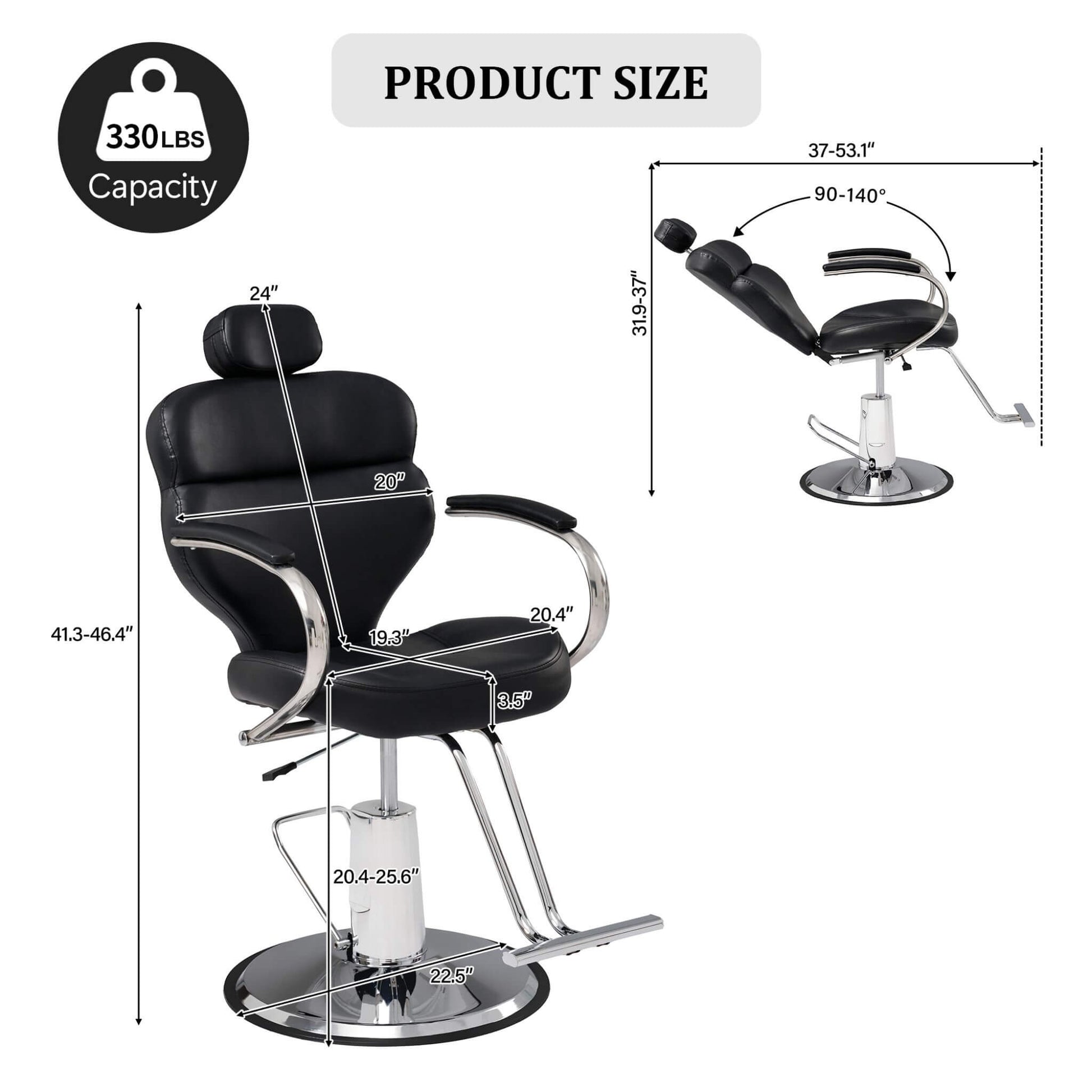 - Strong and sturdy, this barber chair supports up to 400 lbs with a durable steel frame and stable 22.5” chrome base.